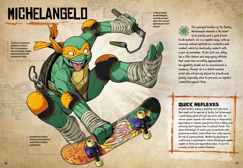 If you’re a fan of Teenage Mutant Ninja Turtles odds are you’re a die hard. For some of us it started with the comics. For others it was the cartoon that would air early morning on tv. No matter how you got into TMNT you’re a person who is definitely radical. Now you can explore the anatomy of a turtle in a new book featuring the four mutated, pizza-loving teenage turtles and their friends.