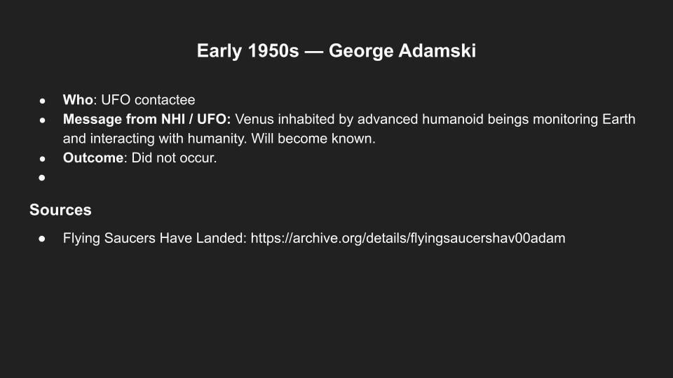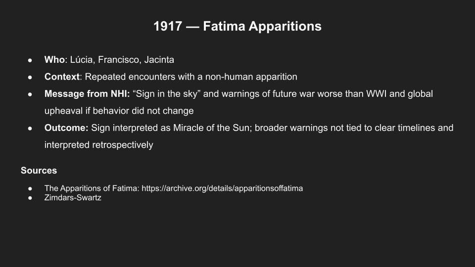 UFO/NHI encounters have included deceptive messages since the beginning of recorded history, almost always appearing spiritual or heavenly in nature. While the message and appearance vary, the effect does not.