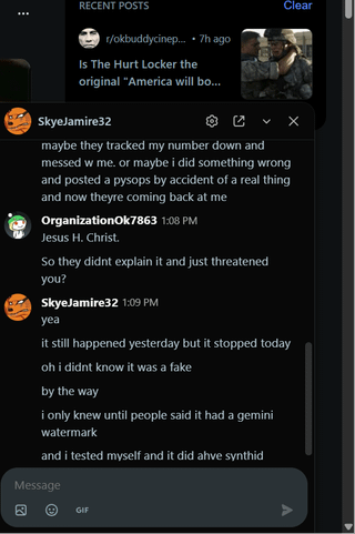 I hate to say it but the simplest explanation is that the original poster is just a liar. He pulled down the image because he got caught, then claimed that he was being threatened, which doesn’t make logical sense, but does make sense from the perspective of a guilty person painting themselves as a victim.