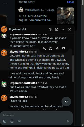 Does anyone actually think any authorities would threaten someone over Reddit and WhatsApp?