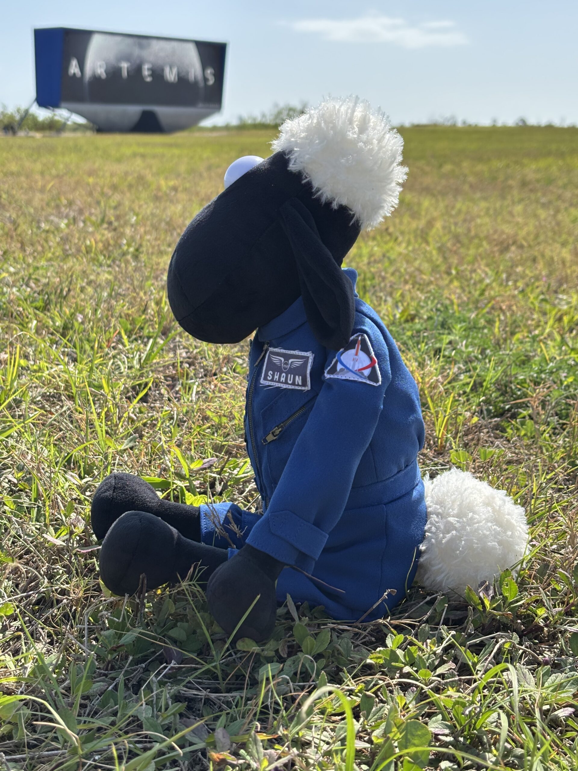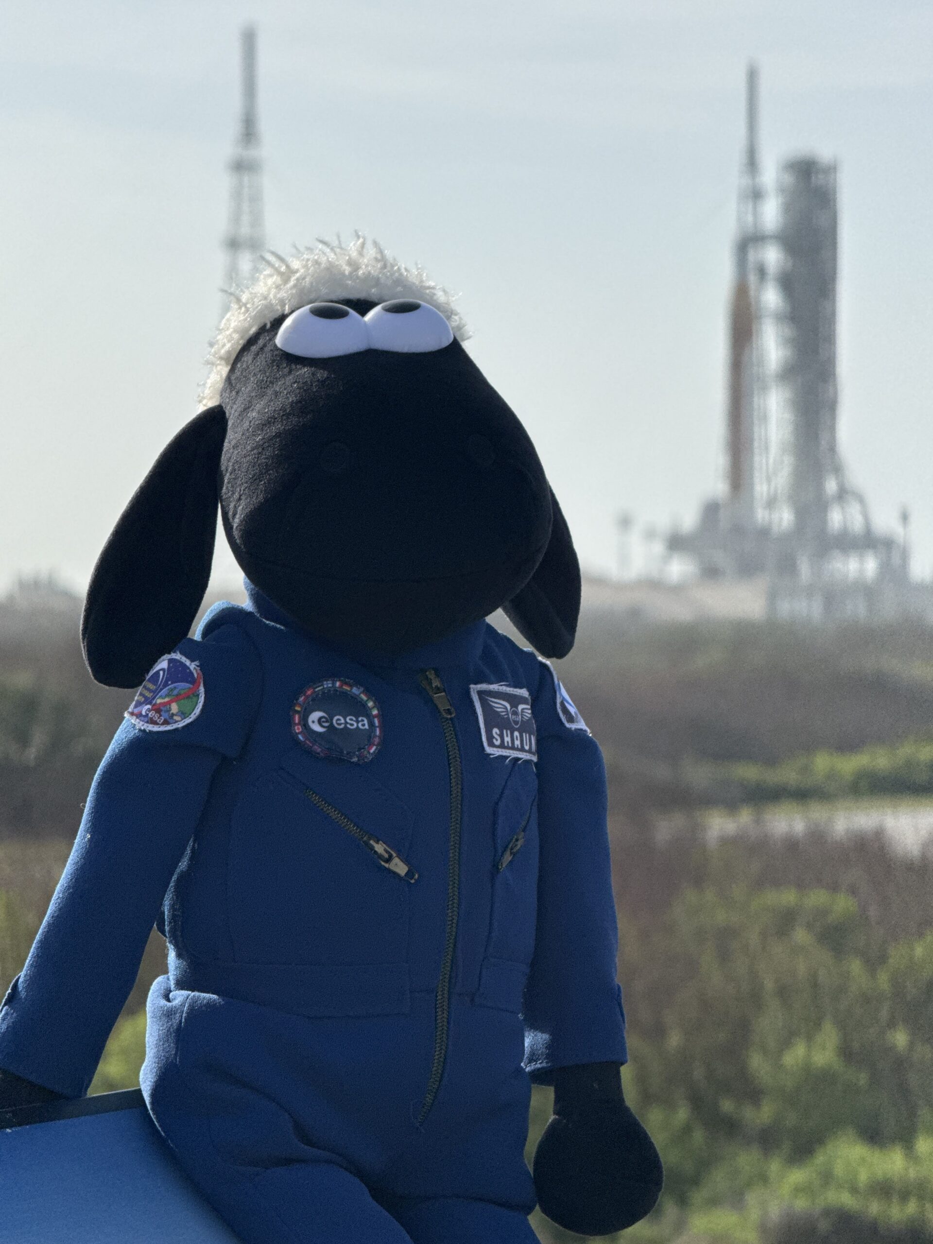 After a long journey all the way from Mossy Bottom to Florida, United States, Shaun hoofed it straight to NASA’s Kennedy Space Center. From the press site, close to the famous countdown clock, he joined international teams, media and spectators following the final preparations. As launch day approached, Shaun soaked up the atmosphere, sharing in the growing excitement surrounding humankind’s return to deep space.