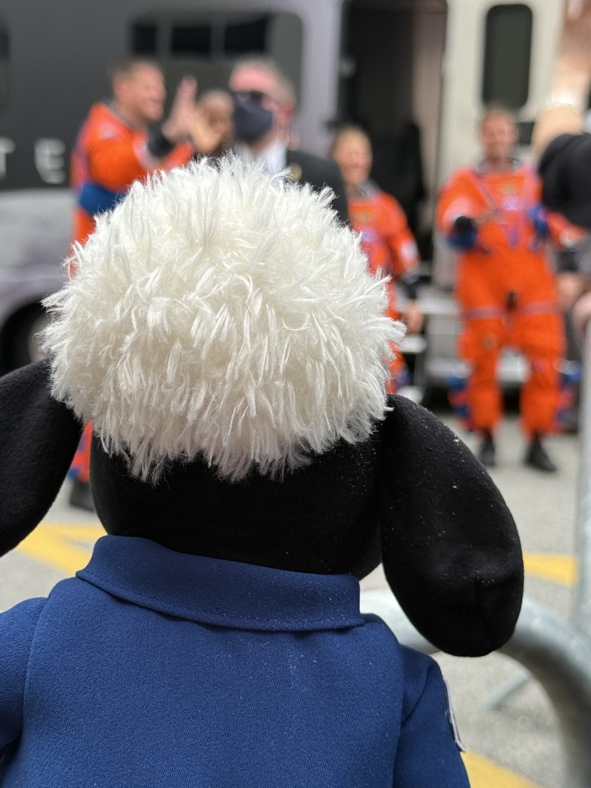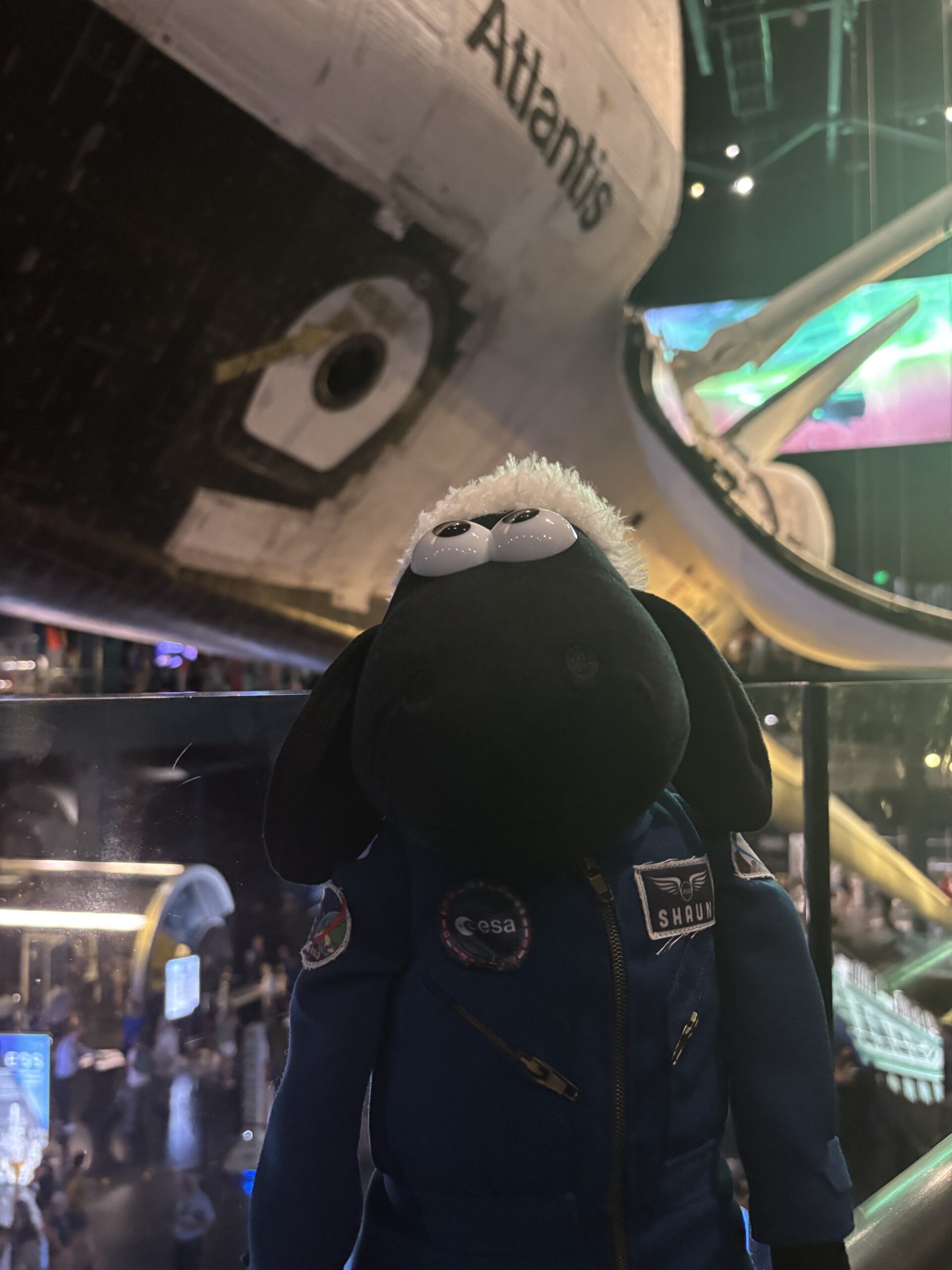 Shaun the Sheep at the NASA Kennedy Space Center Visitor Complex visiting the Space Shuttle Atlantis.