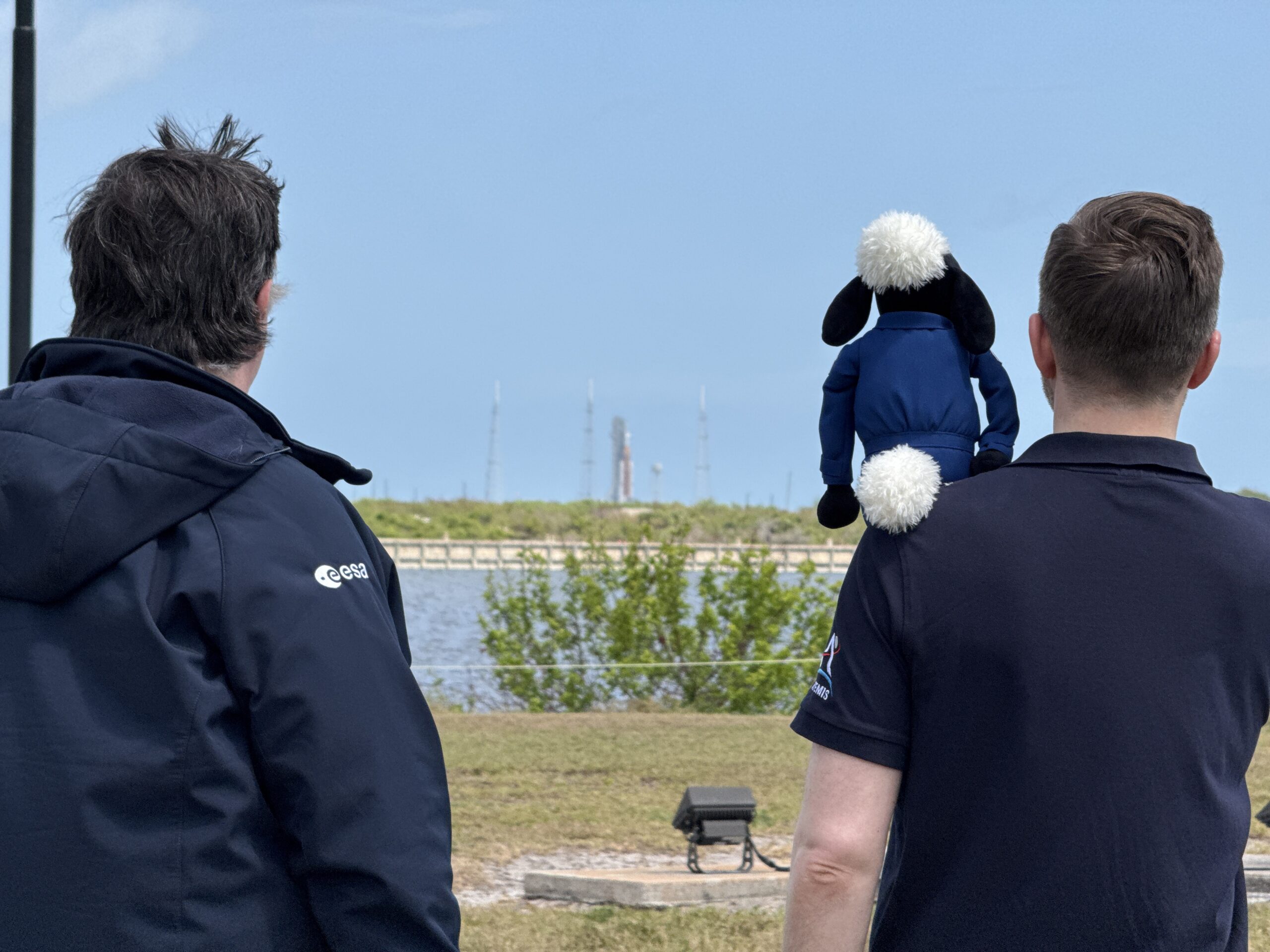 As launch day arrived, Shaun admired the beautiful sight of the rocket on its launchpad alongside ESA’s European Service Module programme and coordination managers Jan-Henrik and Philippe. Together with ‘Team Europe’, he followed every milestone in the lead up to launch, knowing that the European Service Module would play a crucial role in powering Orion’s journey through space, just as it did for his mission.