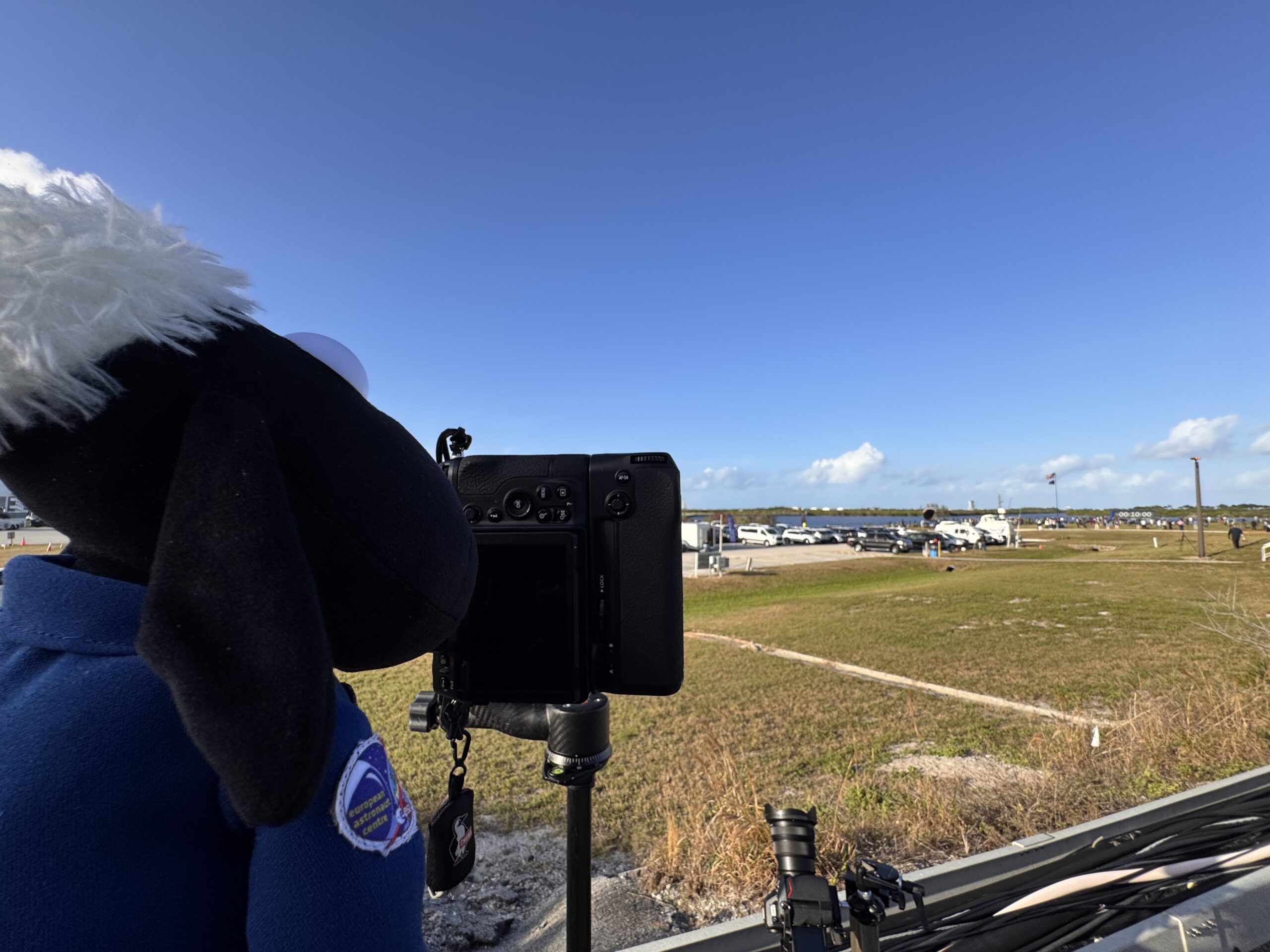 Shaun also took the time to get a bit closer to the rocket that would launch his friends into space. The Artemis II rocket was at its pad at Launch Complex 39B – the Space Launch System, with Orion and its European Service Module on top was a familiar and beautiful sight.
