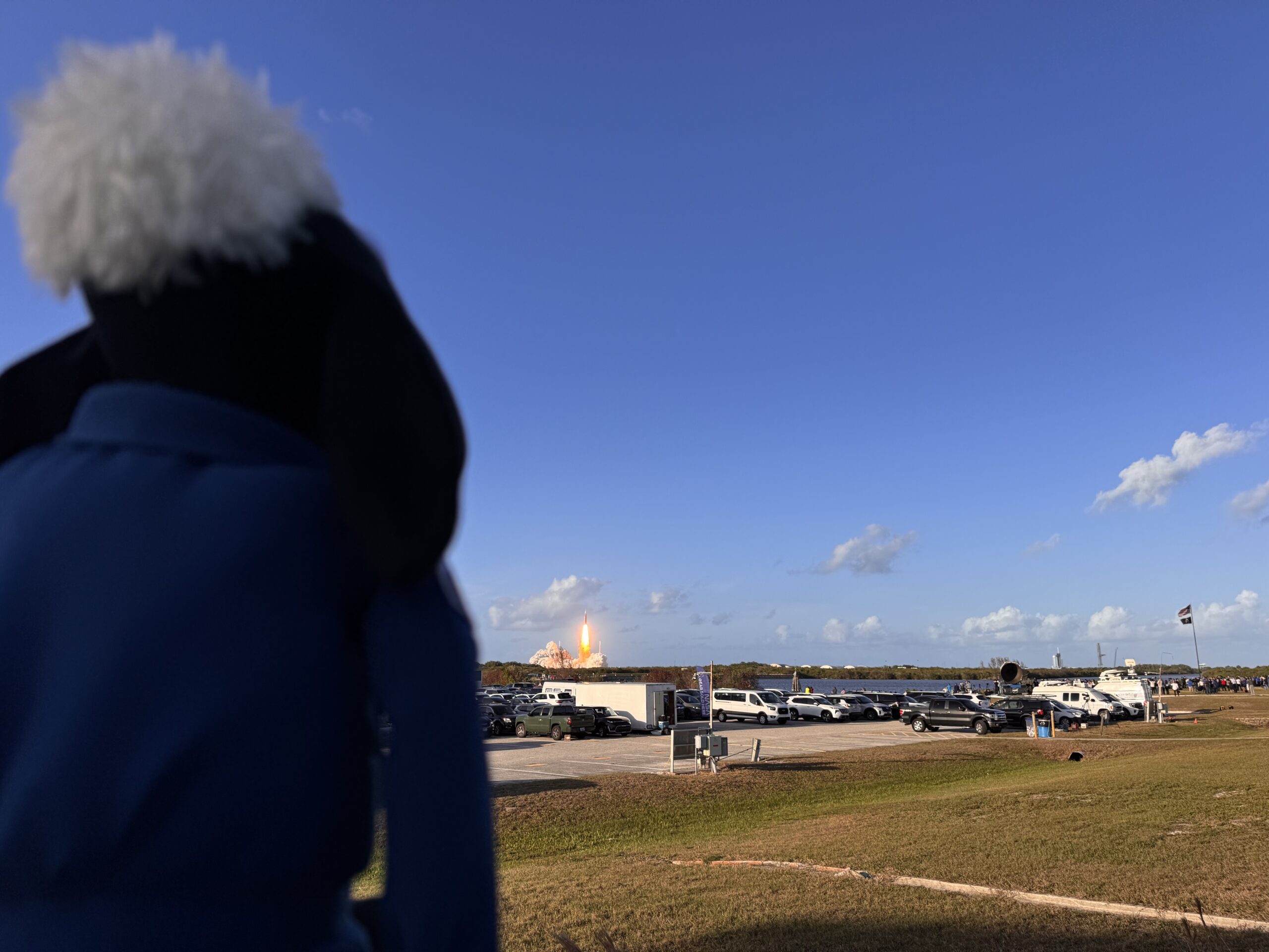 As the countdown reached zero and Artemis II lifted off, Shaun watched the spectacle in awe as Orion began its journey. The powerful rocket rose into the sky, marking the start of the mission that carried humans back towards the Moon for the first time in over half a century. From the ground, Shaun followed every moment.