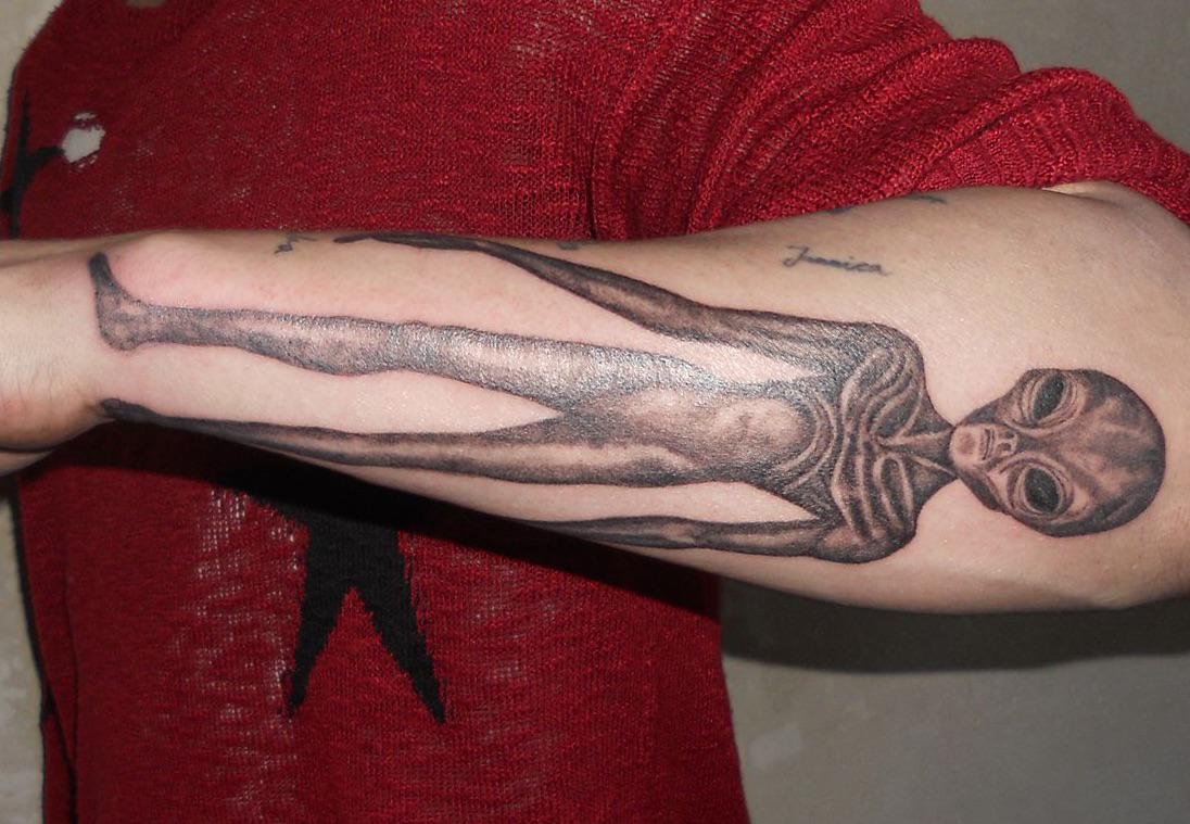 Somewhere, in a parallel universe, an alien is sporting a tattoo of a human.