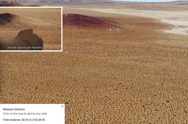 If you go to the location in google maps and change to global view and tilt the angle as far as you can and zoom in as far as you can and rotate the "camera" around, the 3D topography within google maps kind of glitches where the topography isn't perfectly aligned and you can see through the map and the blue background comes through. Its like looking through a little crack in the topography that can only be seen if you look at it from the right angle. I tried to replicate this in other parts of the map, but this is the only area that I could find that does this. It does it every time I go back to it. Its as if the topography has intentionally been remapped but the people that did it didn't bother getting it perfectly aligned. It occurs exactly in the same spot that was pointed out in the documentary (the picture in the white box is a screen capture from the documentary).