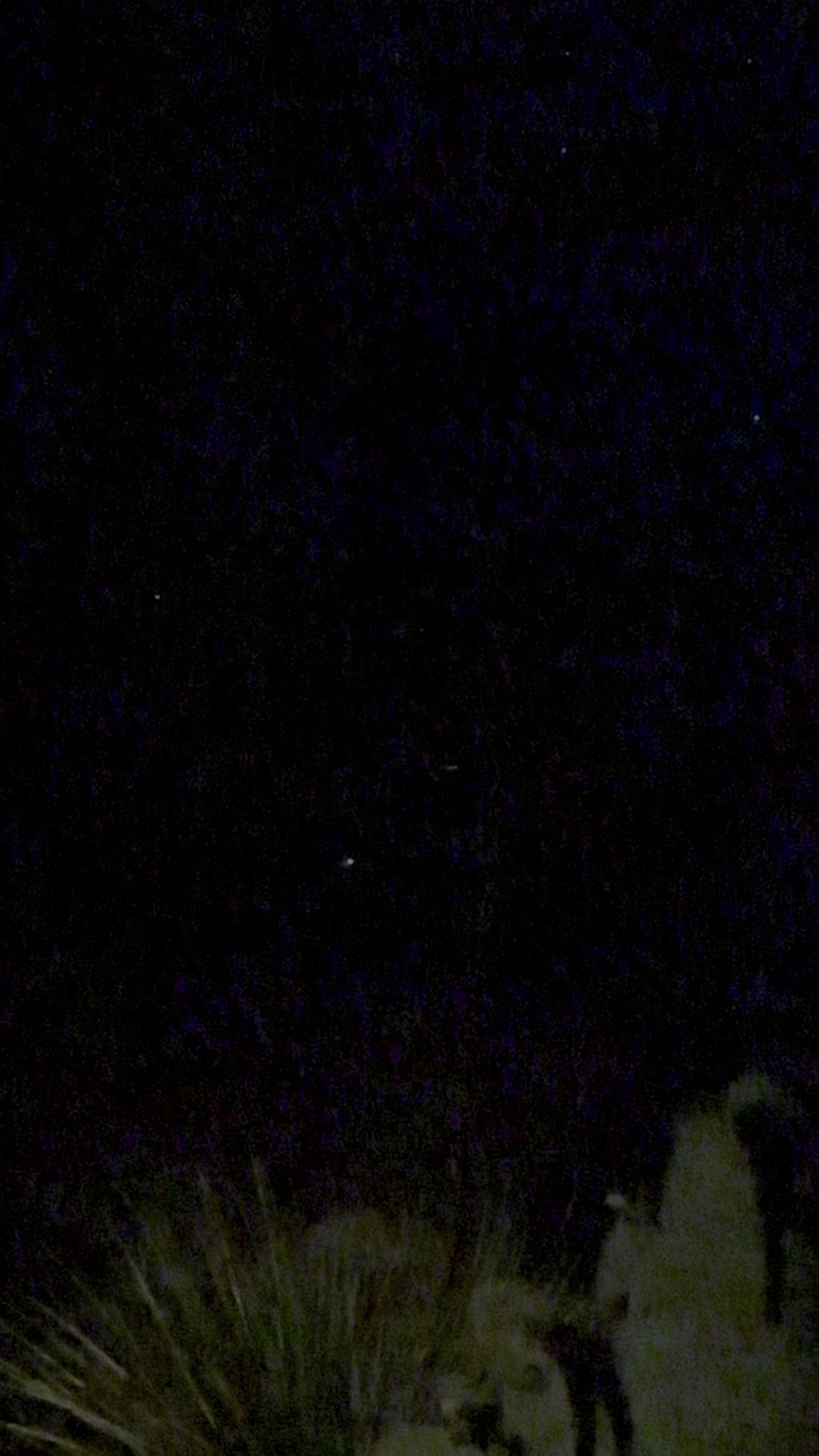 After sitting for two-ish hours watching the Marfa lights and getting some rather unconvincing video, I returned to my Airbnb and noticed some erratic moving lights in the sky on the outskirts of town. A few lights passed by before this really bright orb. The animals in the neighborhood started going crazy right about the same time.