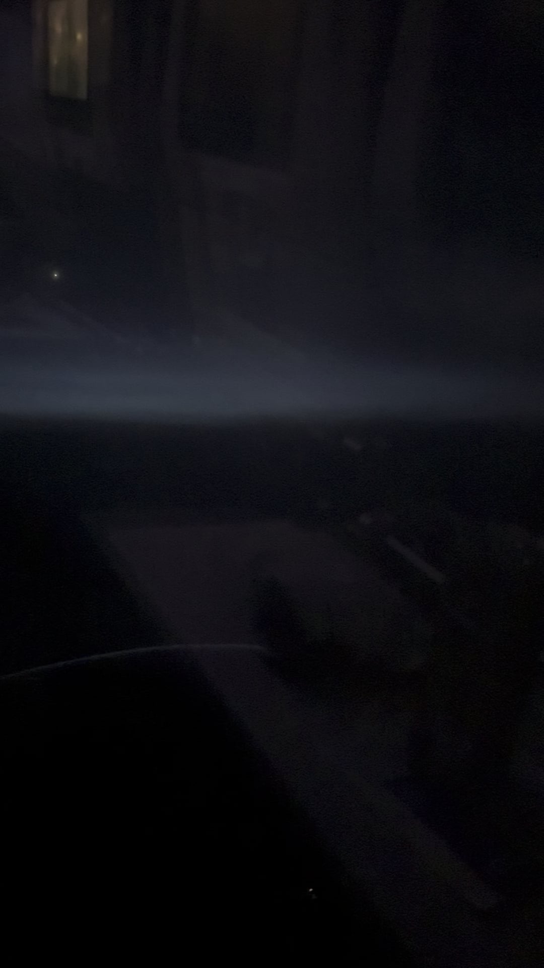 Edit: no it’s not a reflection from my phone. Watch the whole video. I had my coat over my head to block out background lights, and the light moves independently from the direction that my phone moves. Also, the light at times is defused behind clouds. Look at the focus of the light on the wing tip for reference.