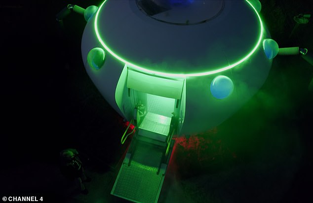At night, colour-changing lights and a smoke machine adds to the UFO’s mystique
