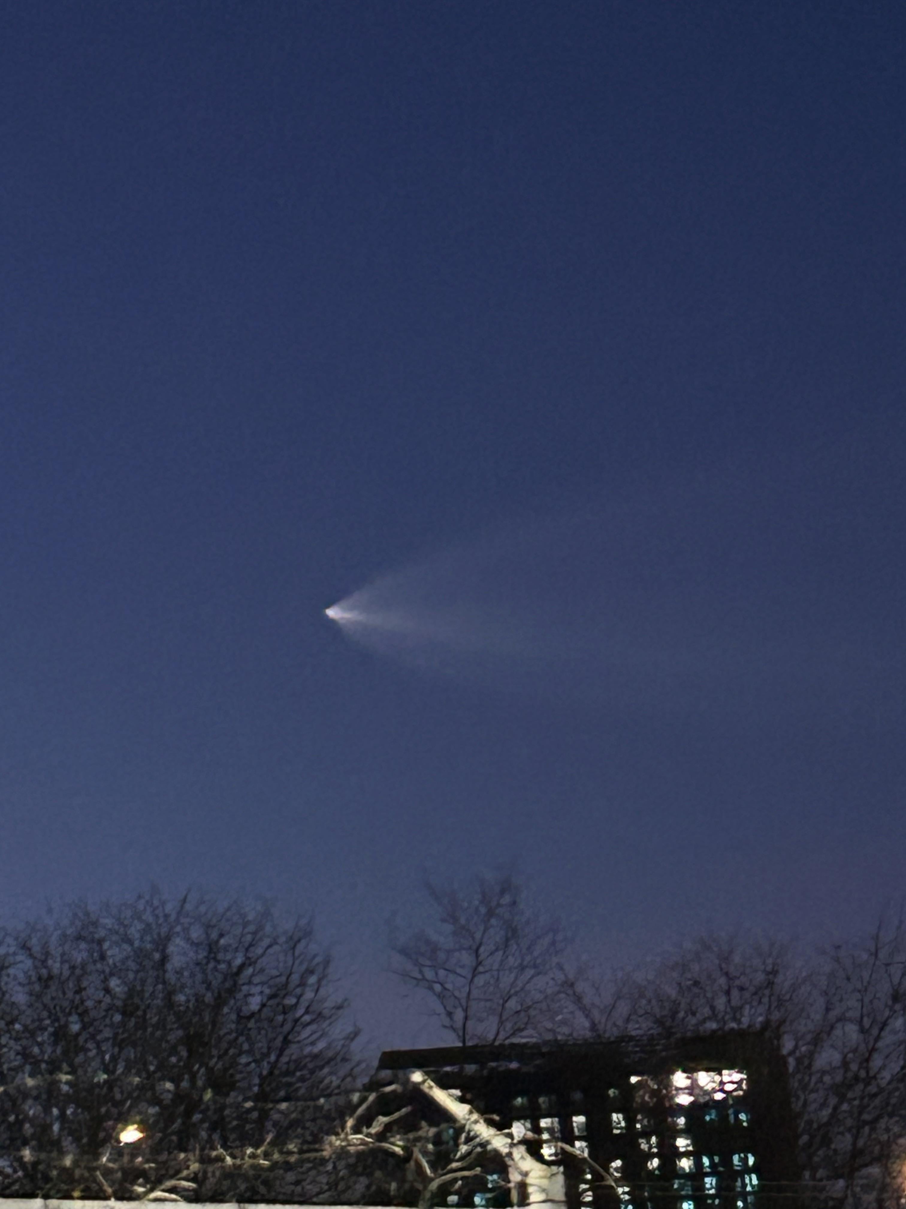 PatmygroinB on April 14, 2026 11:19 am Same in NJ on the turnpike about the same time. Grabbed a few pictures. Not aware of any rocket launches up this way