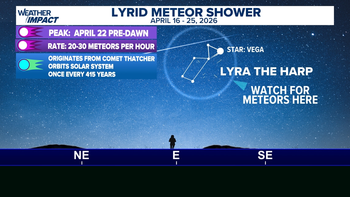 SAN ANTONIO — The Lyrid meteor shower, one of the oldest recorded celestial events, will reach its peak on the night of Wednesday, April 22, 2026, offering sky watchers a reliable springtime display of “shooting stars.”