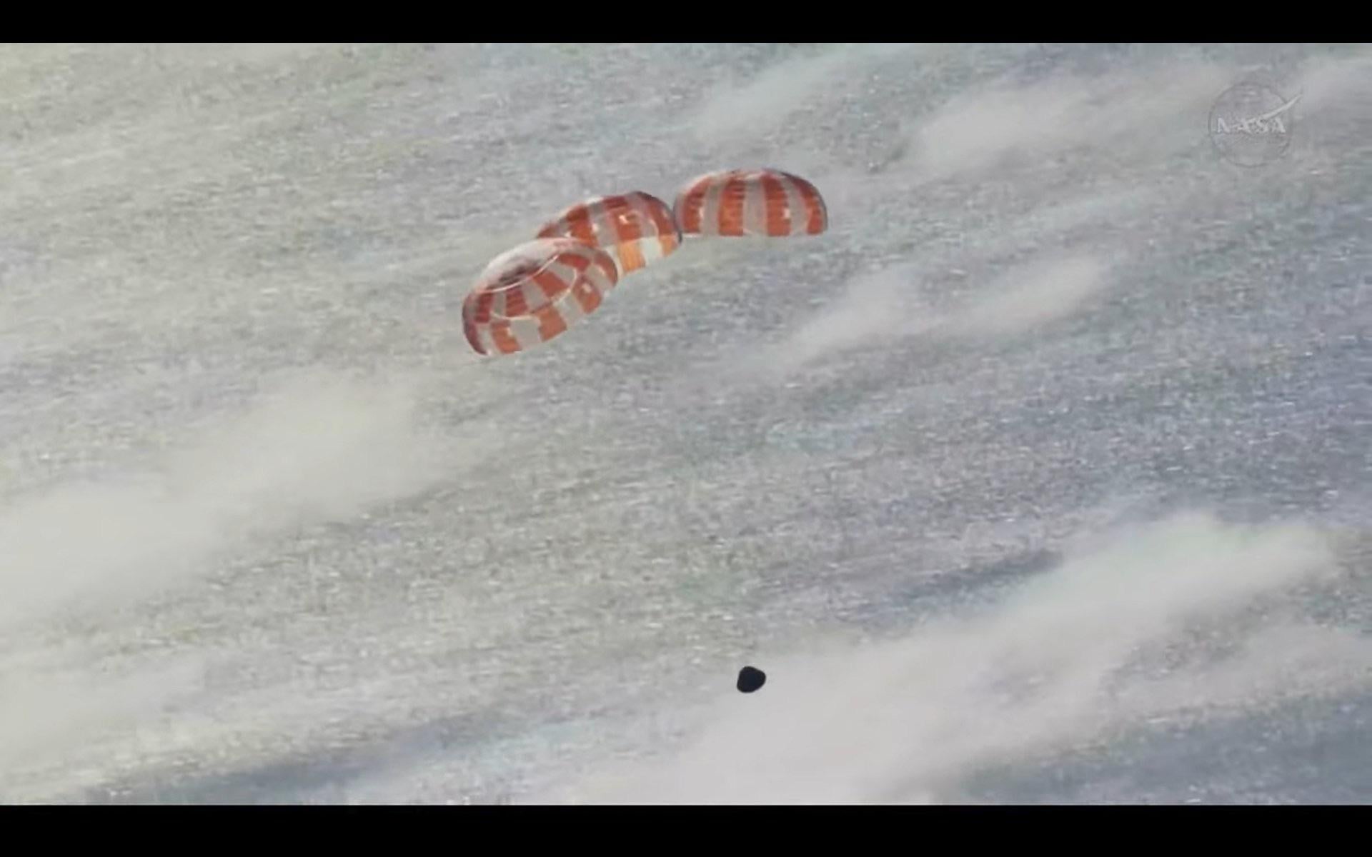 Orion’s main parachute has deployed. The spacecraft has a system of 11 chutes that will slow it down from around 300 mph to 20 mph for splashdown. by GiveMeSomeSunshine3