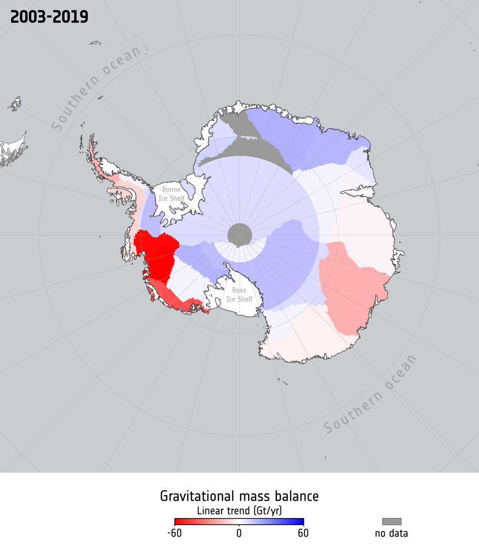 Use the slider to see how the net increase of mass on Antarctica has accelerated since 2020.
