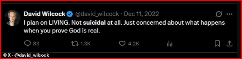 However, the circumstances of the death have raised many questions, especially due to previous statements by Wilcock, who had publicly denied any suicidal thoughts. In a recent broadcast, he stated that natural death was the only acceptable way to die.