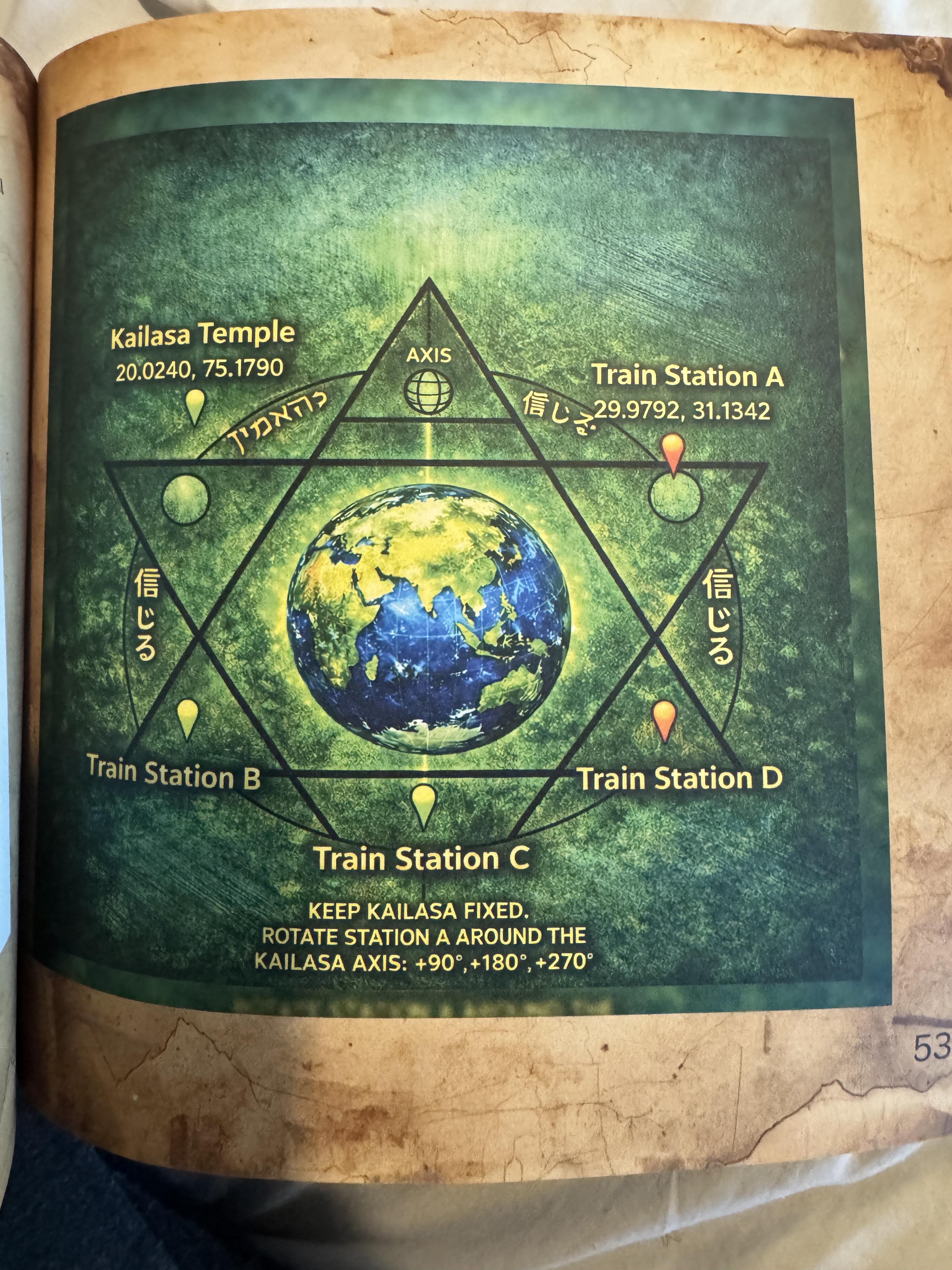 Kailasa Temple , the Great Pyramid of Giza, Lake Baikal . Page 53 of the book, Talia and the Time Train. Shows how they are all connected. https://www.kingpin.industries/2026/01/parent-educator-guide-talia-and-time.html by Category4392
