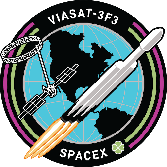 SpaceX’s design for the ViaSat-3 F3 mission patch. Graphic: SpaceX