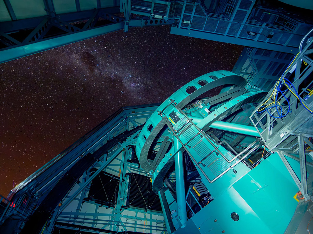 The night sky dazzles through the open dome of the Rubin Observatory. Rubin Observatory’s decade-long Legacy Survey of Space and Time (LSST) will generate an ultrawide, ultrahigh-definition, time-lapse record of the universe. Credit: RubinObs/NSF/DOE/NOIRLab/SLAC/AURA/W. O’Mullane