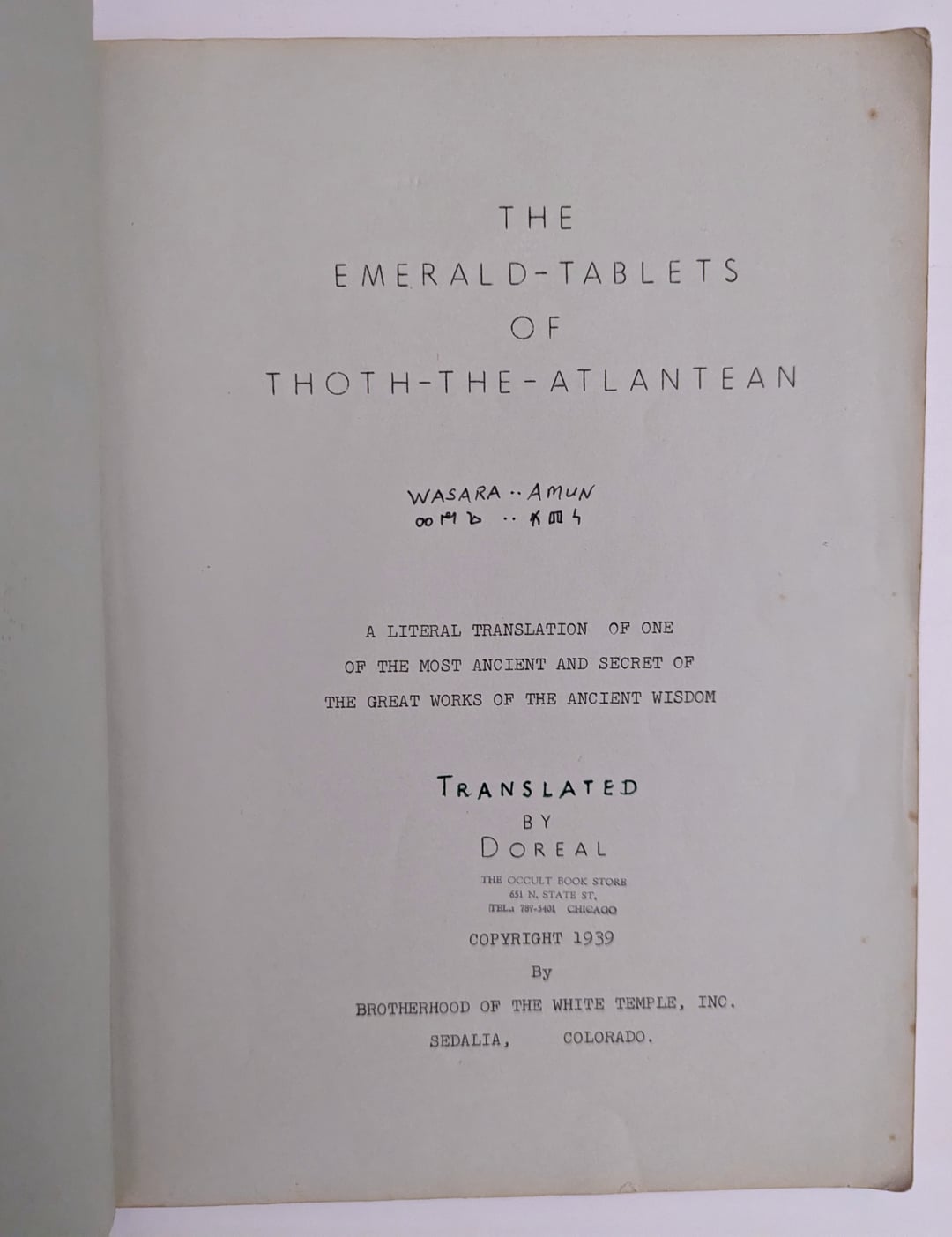Another grail acquired for the high strangeness collection. I never thought I would actually own one of these as they are so rare, but this recently popped up in an estate auction in Australia with a collection of many obscure occult books and publications. This is a fascinating piece of mid 20th century esoterica that is still featured prominently today and many books and YouTube videos. It’s often confused with the original medieval Hermetic work “The Emerald Tablet” which is the origin of the axiom “As Above, So Below.” But this curious volume is the product of one of the more interesting figures of the 20th century occult movement.