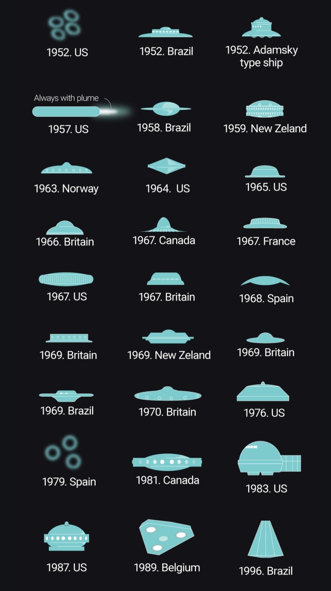 While browsing for new information on UFOs and UAPs, came across this interesting infograph on the different shapes and sizes of crafts sighted in the past 8 Decades. This article is published by South China Morning Post!