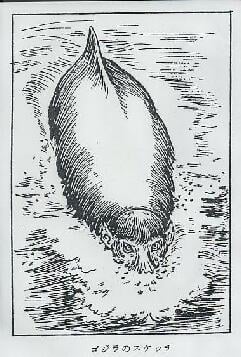 “Antarctic Godzilla” was a large cryptid seen once by the crew of a Japanese research ship near Antarctica in 1958. It was described as having a 70–80 cm (27–31 in) long cow-like head and a monkey’s face with large eyes. It also had large fins running down its back