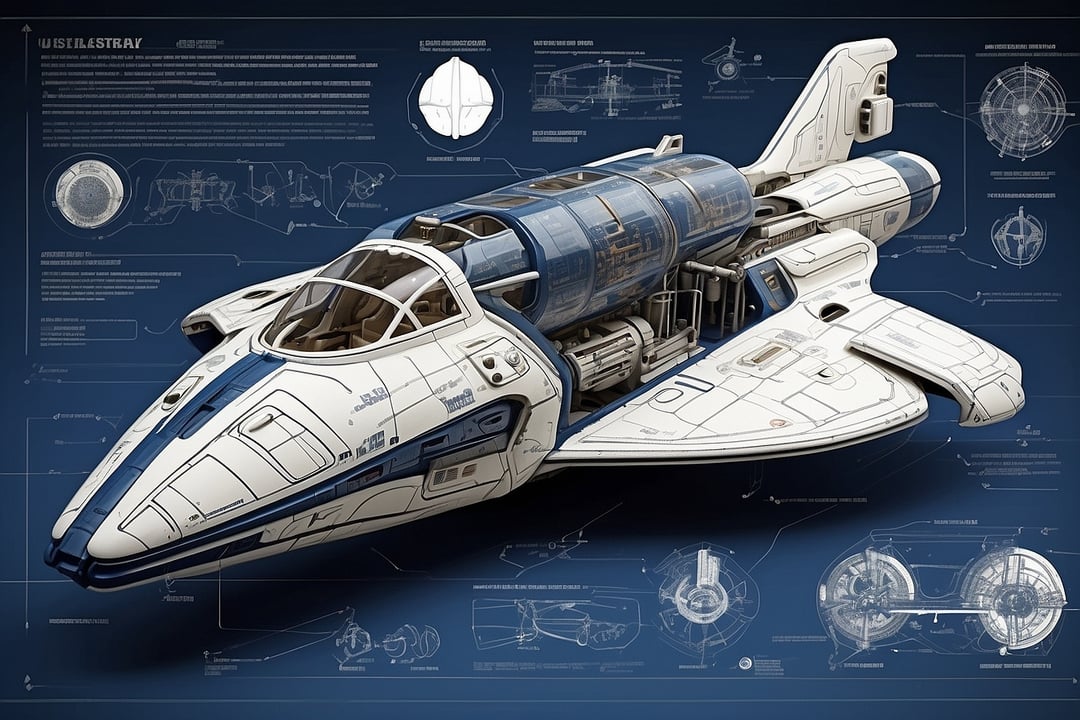 Concept Blueprint-style illustration of the spaceship/key elements from the Interstellar movie. by Lucky-Independence73