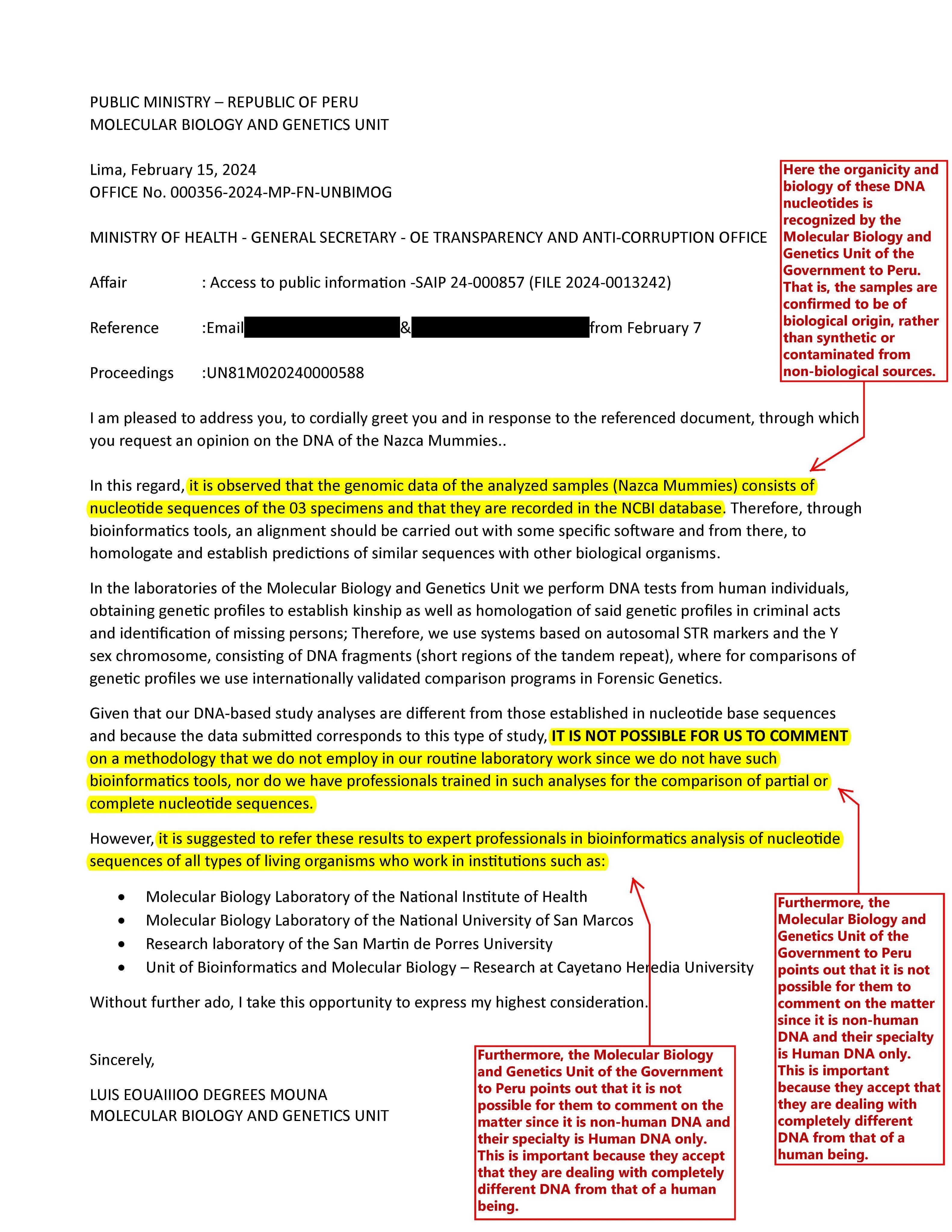 Historical news: the Government of Peru has officially recognized Molecular Biology and Genetics of the Federal MP; that the [Nazca Tridactyl Mummies; MarÃa and Victoria] are ORGANISMS and not crafts. Trades: DC0C089-2024-SG-OTRANS-MINSA and 000358-2024-MP-FN-UNBIMOG 📷