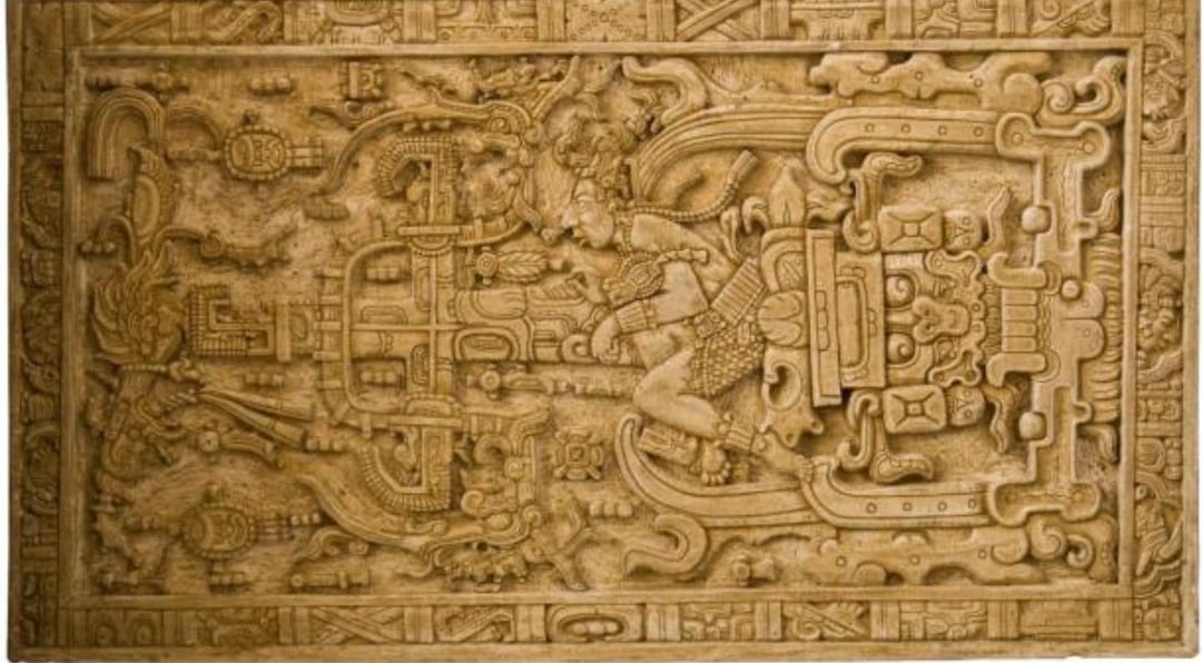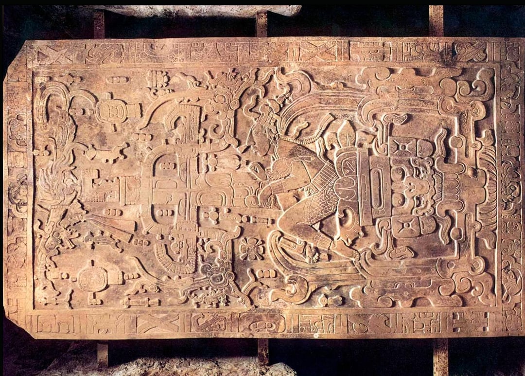 While reading Jacques Valle’s, “Passport to Magonia,” I came across this page where they talk about discovering a 6ton inscribed tablet depicting someone using advanced technology covering this sarcophagus beneath a Mayan pyramid at least 1,000 years old, back in the 1950s.