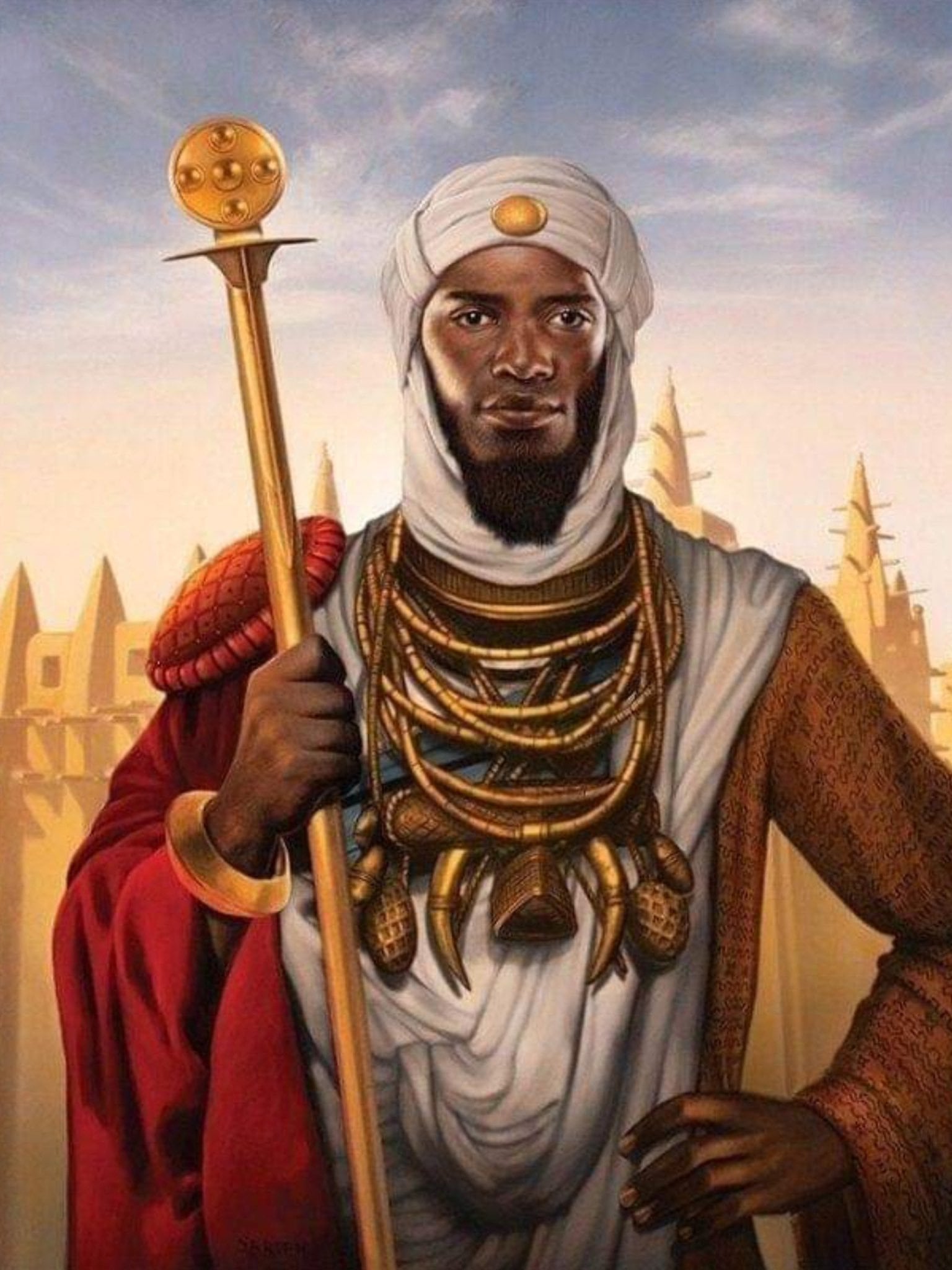 Musa was wealthier than any of these modern estimates. His wealth is always mentioned by others, but we take pride in the fact that we went around helping rebuild economies. His Jaliyaa is depicted on a black basalt figurine in the Andean found by Col Fawcett. At that point we were the world’s leading gold producers. even those Indigenous tribes Colombus writes about ” there had come to Hispaniola people who have the tops of their spears made of a metal which they call quanin, of which he had sent samples to the Sovereigns to have them assayed, when it was found that of 32 parts, 18 were gold, six of silver and eight of copper.” These samples were sent back to Spain on a mail boat, and the proportion was found to be identical to what was being forged in African Guinea. there’d be thousands of ships sent from Mali & Song Hay