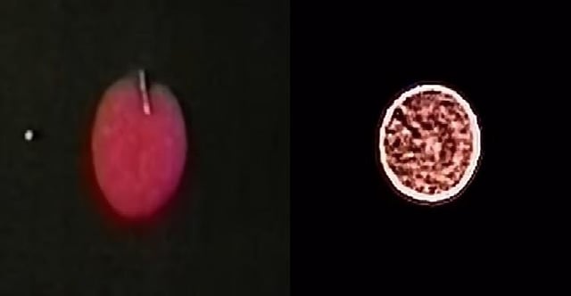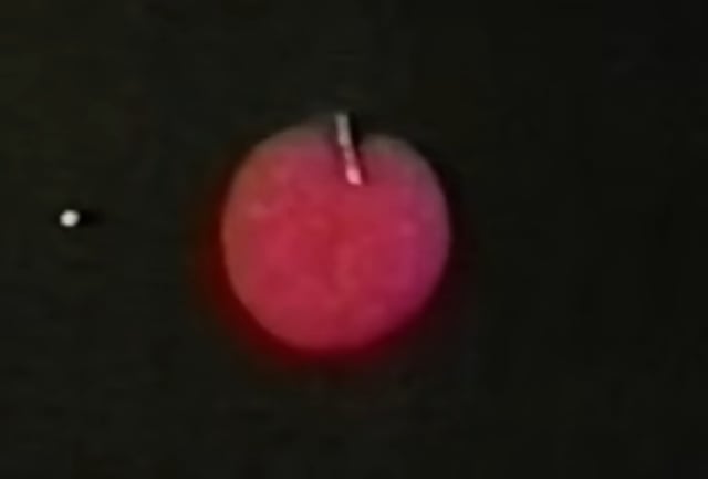 The Left UFO Betty Hill photographed, she called "The Big Apple". I was able to identify it as identical to the orb Chris Bledsoe Recorded. The contrasts are different because of the exposure setting and recording medium used. Betty Hill using Analog film and Chris Bledsoe using a digital video camera. The energy levels produced by a UFO could effect brightness as well. Both Images were taken 30+ years apart from one another.
